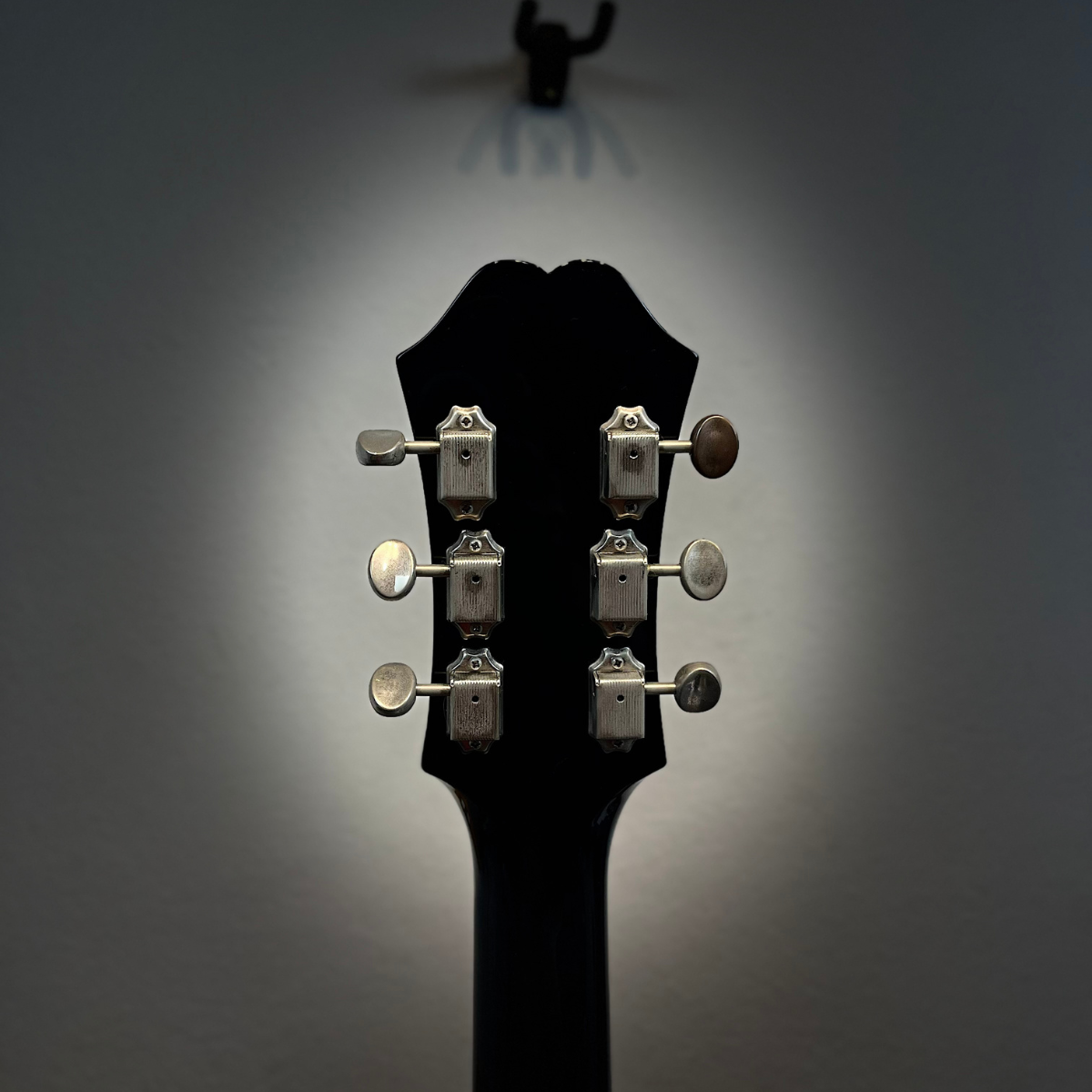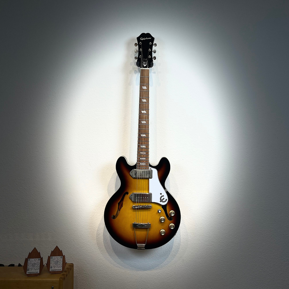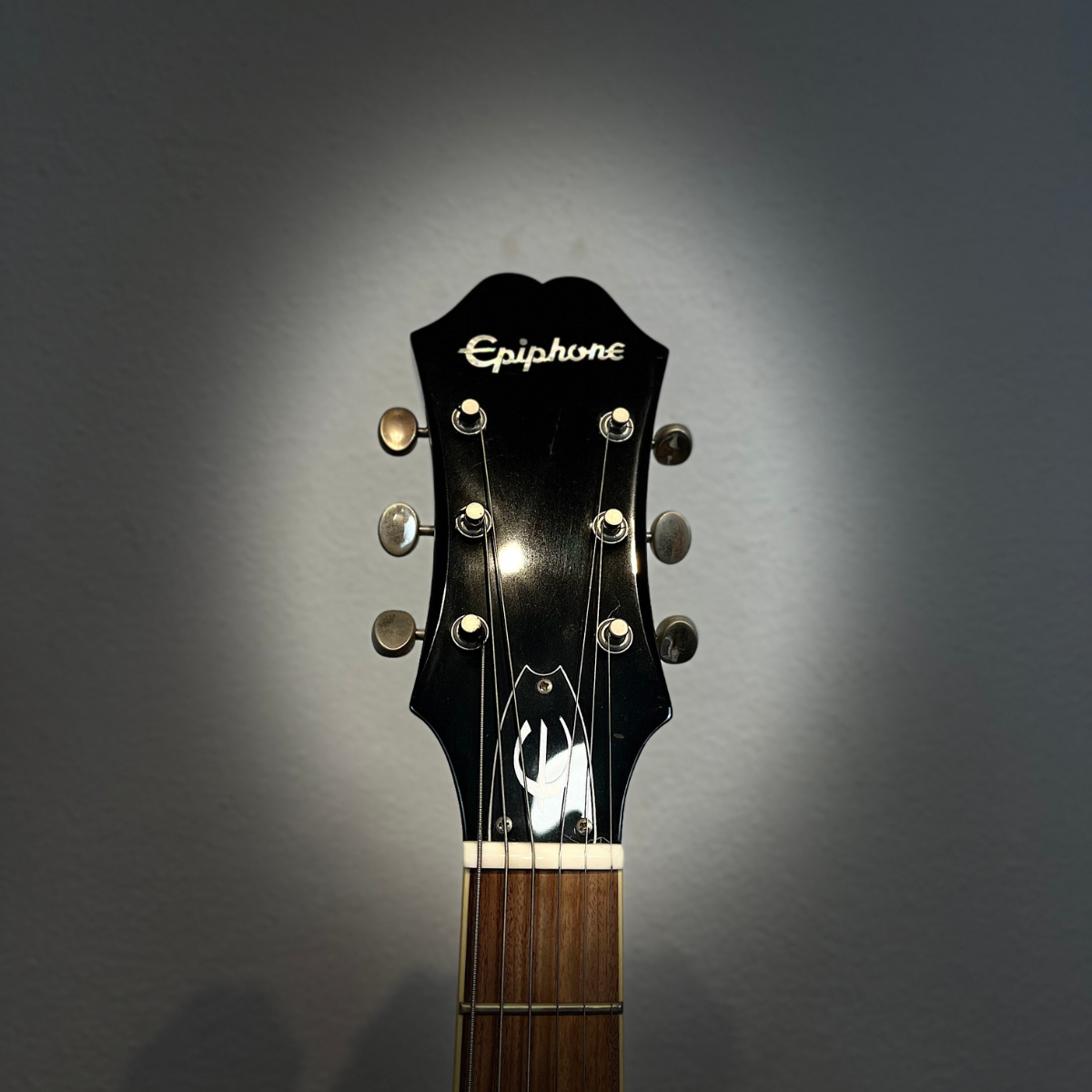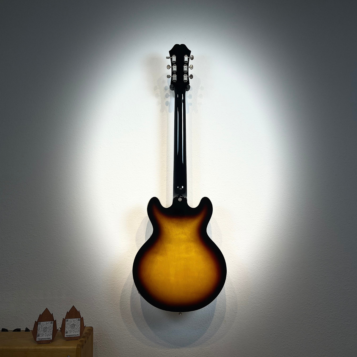 Guitarra Epiphone Casino Coupe no clássico acabamento Vintage Sunburst, em estado impecável. Modelo archtop de corpo semi-oco (hollow body), com construção leve, excelente ressonância acústica e timbre rico em harmônicos.